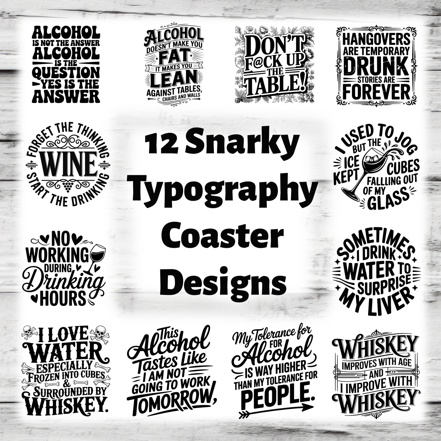 12 Snarky Typographic Coaster Designs 1 SVG is backordered and will ship as soon as it is back in stock.