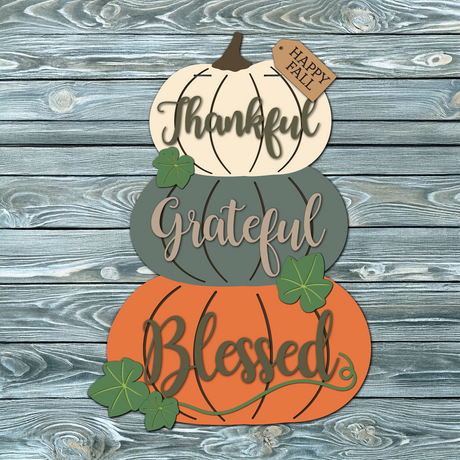 Thankful Grateful Blessed Stacked Pumpkins Door Hanger SVG