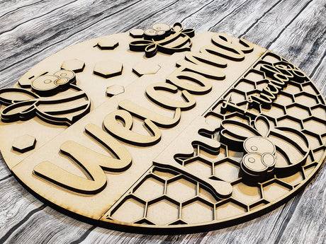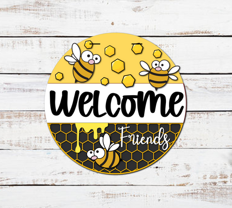 Welcome Friends Cartoon Bee Door Hanger - Lvl 2