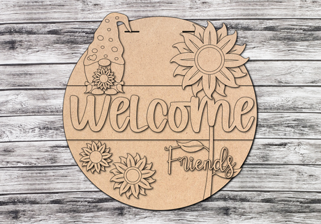 Welcome Friends Sunflower Gnome Door Hanger - Lvl 2