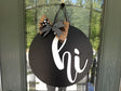 Hand painted Hi Doorhanger! 3D 1/4" MDF Hi on an 16" Black Round Shiplap Door Hanger with a coordinating ribbon hanger.