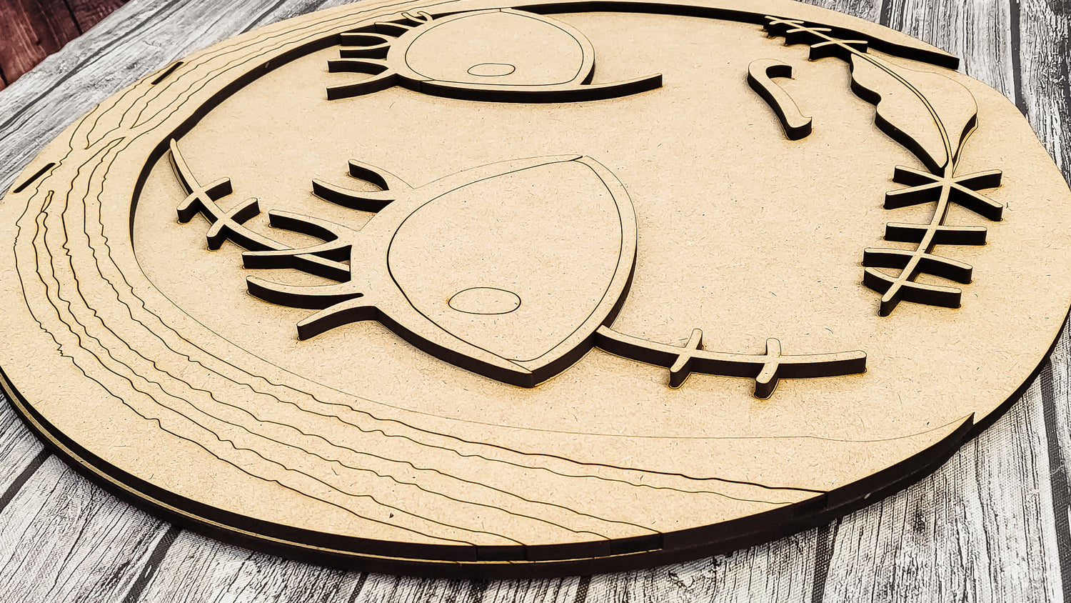 Our unfinished wood cut-outs are crafted of a high quality grade MDF. All products are cut in-house. We recommend using an acrylic paint to seal the your finished projects. All products cut on 1/4" MDF.